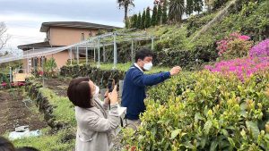 当日キャンセルが多かったため、少人数での開催でした。せっかくなので、茶摘み体験をして頂くことにしました。