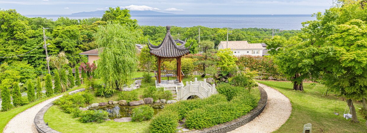 名付け、紹興園。盆栽をイメージにデザインされ、直径20mもあり、