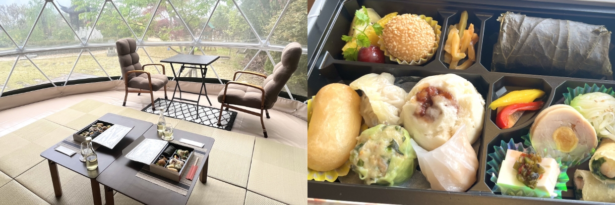 お庭に隣接のドームでご家族やご友人と気兼ねなく特製の飲茶弁当をお楽しみください。