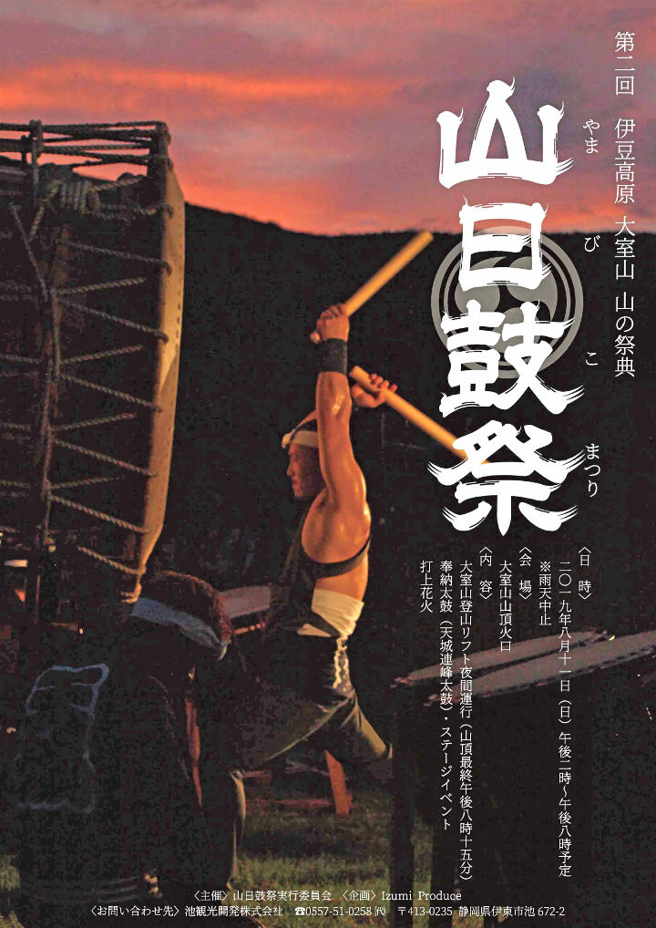 いよいよお盆休み本番になり伊東市や伊豆高原にも観光やレジャー、グルメにとお越しになる方が多いかと思います。当店、本格海鮮中国料理の一茶一酒にも連日多くのお客様にお越しいただき大変感謝申し上げます。本日は11日(日)に行われる第2回!伊東市伊豆高原の大室山、山日鼓祭についてのご紹介となります。